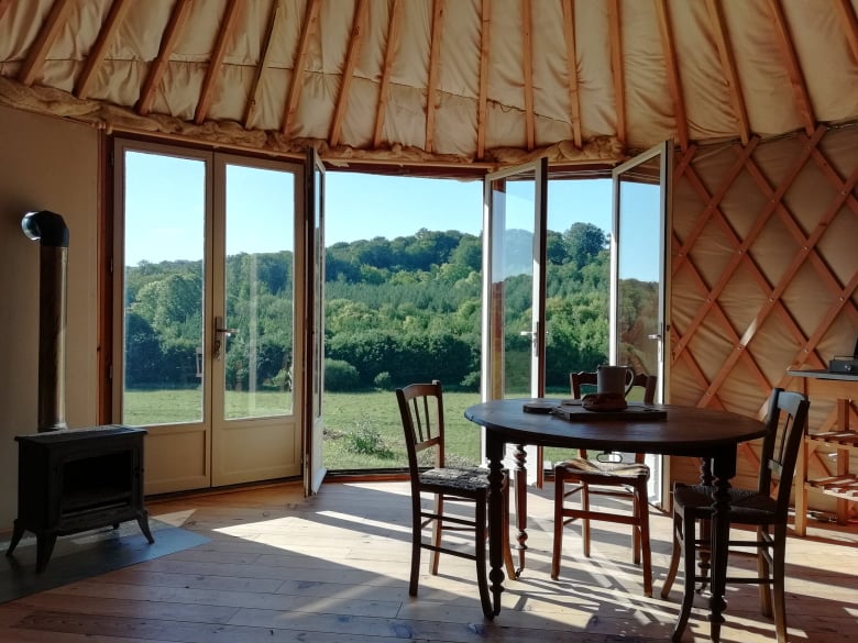 Perchée en haut de la petite colline qui surplombe la jolie vallée des Evoissons, au milieu de la prairie des moutons, notre yourte tiny et cosy vous apportera tout le confort nécessaire pour un sejour de déconnexion en pleine nature.