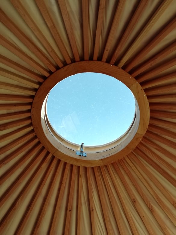 Si les nuits sont fraîches, et même en plein hiver, les parois isolées avec de la laine de mouton et le poêle à bois gardent ce petit nid douillet au chaud. S’il fait très chaud, les grandes fenêtres et l’ouverture du toit, permettent de ventiler la yourte